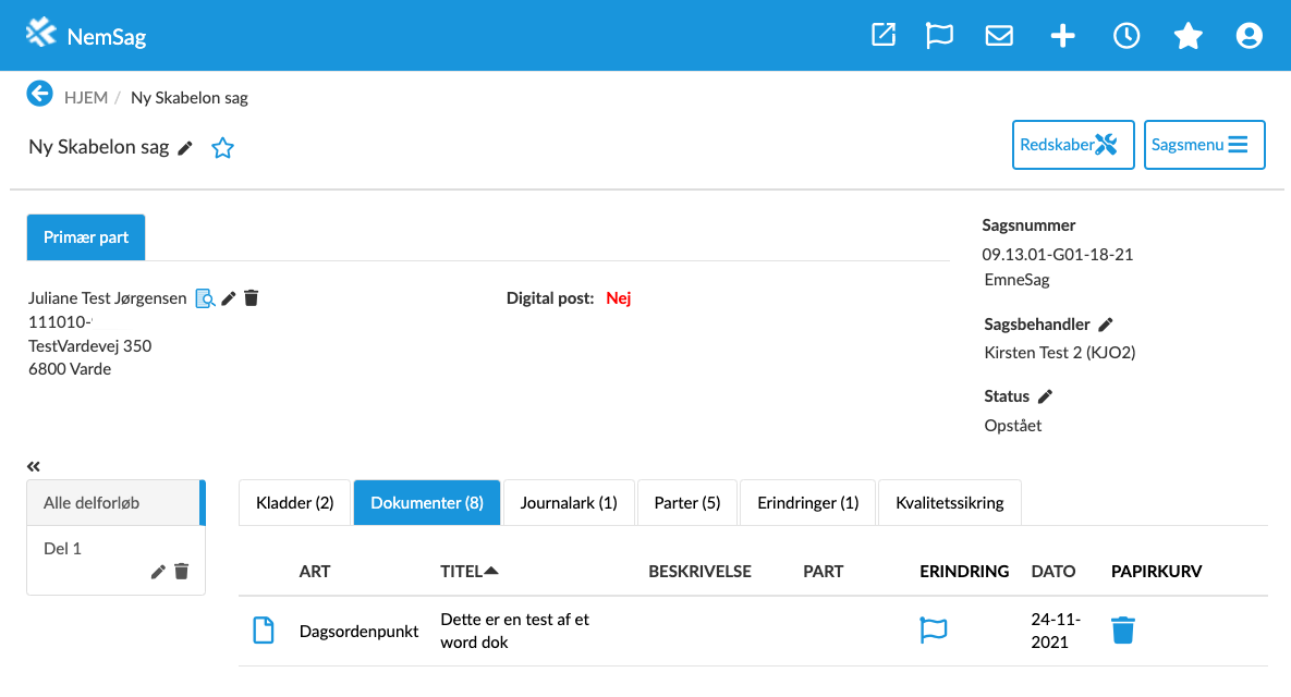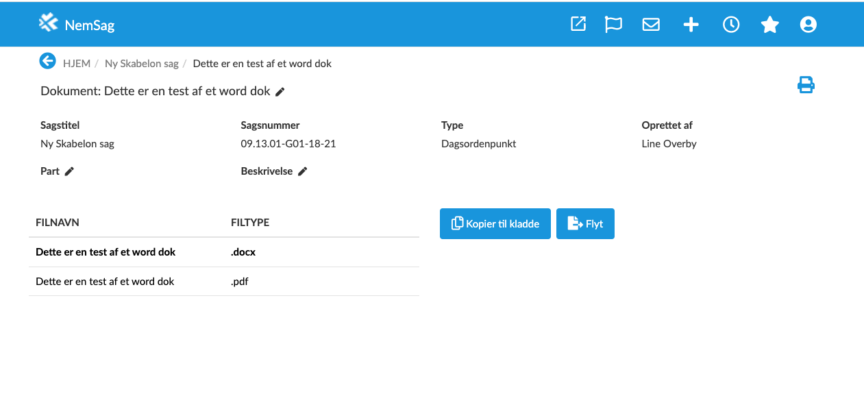 Du kan nu se dokumentet på sagen