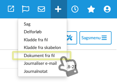 For at tilføje en nyt dokument fra en fil, skal du klikke på Dokument fra fil i menuen Tilføj