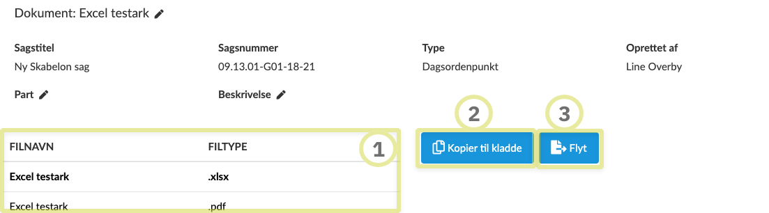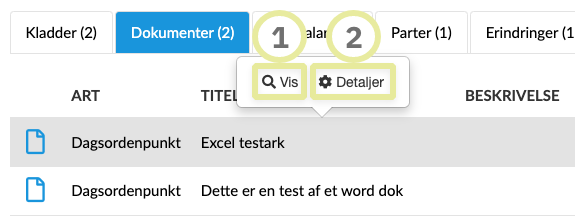Når du klikker på et dokument har du mulighed for at