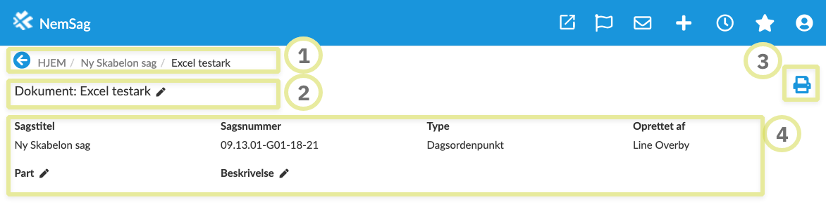 Dokumentets titel findes her, samt muligheden for at redigere den ved at klikke på blyanten.