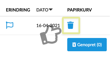 Du har mulighed for at lægge dokumentet i papirskurven, ved at klikke på ikonet