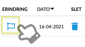 Du kan tilføje en erindring, eller redigere en eksisterende, ved at klikke på ikonet for Erindring