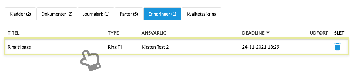 Du har mulighed for at slette en erindring ved at klikke på ikonet