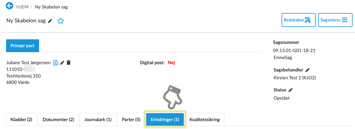 Opret erindring på sag