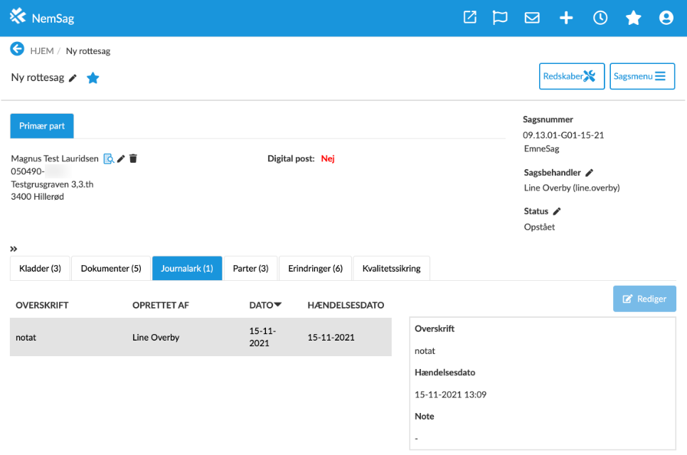 Journalnotat på sag