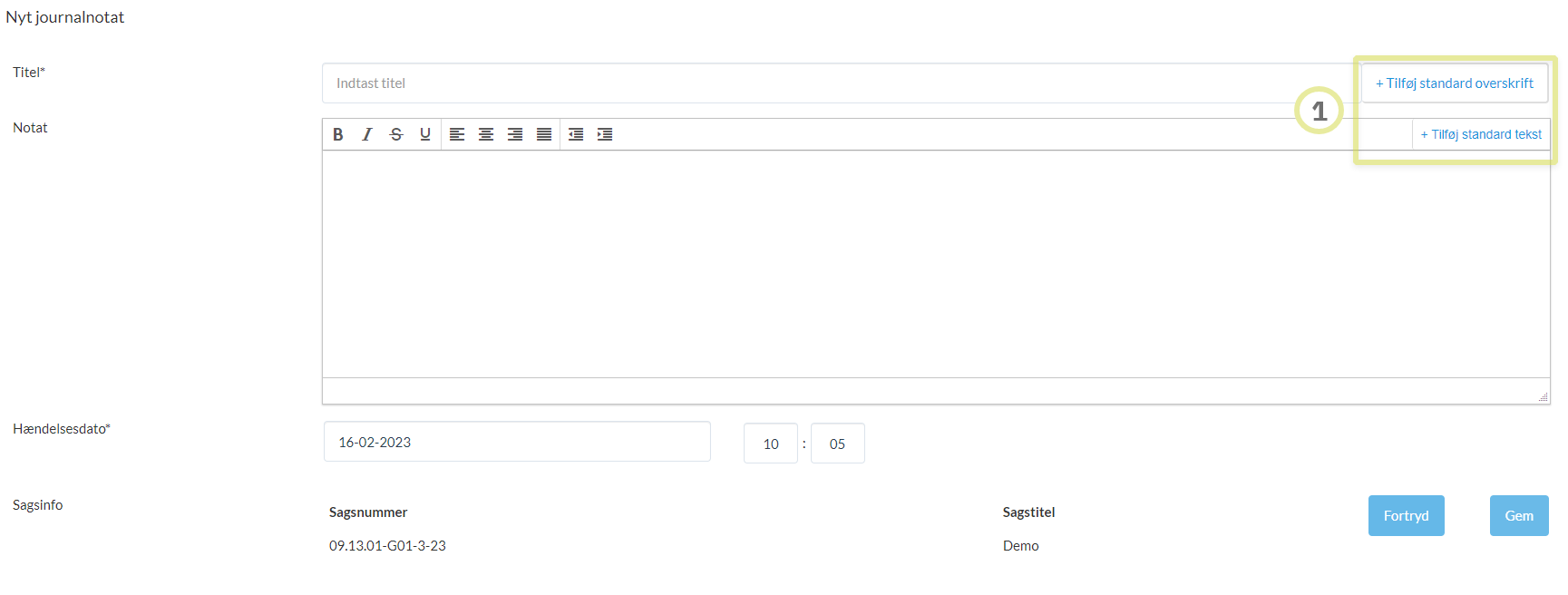 Her kan du oprette et journalnotat