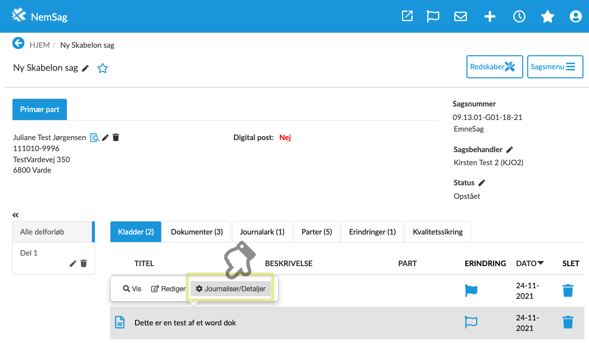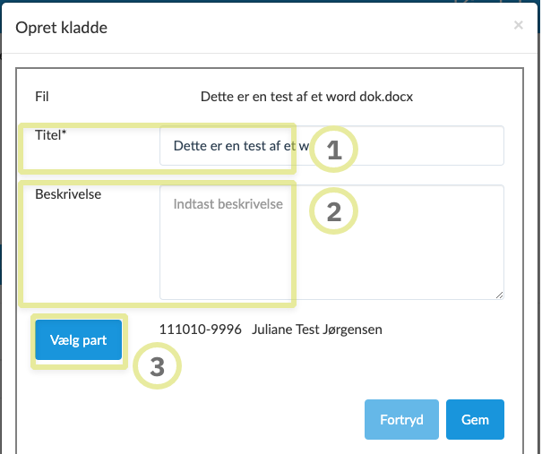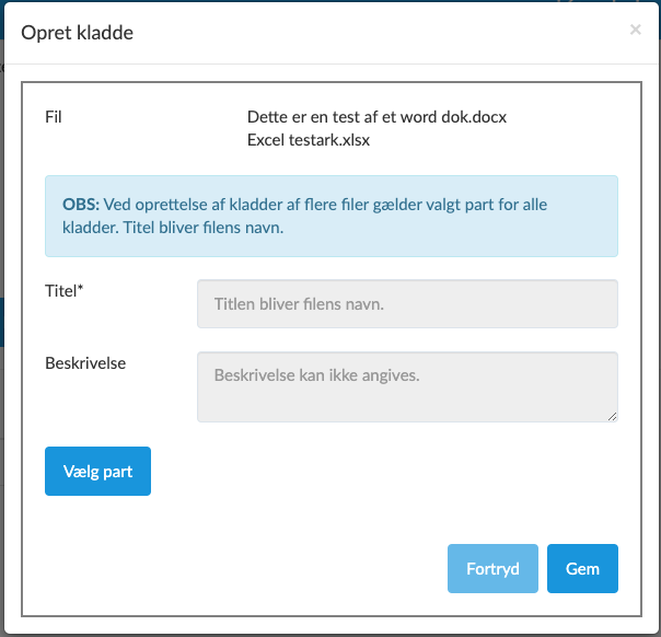 Bemærk at når du masseopretter kladder, så bliver kladdens navn filens navn. Dette kan du ændre efterfølgende hvis du ønsker