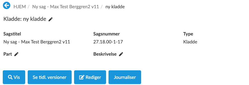 Fanen Kladder indeholder alle kladder fra sager, hvorpå den valgte er part.