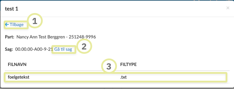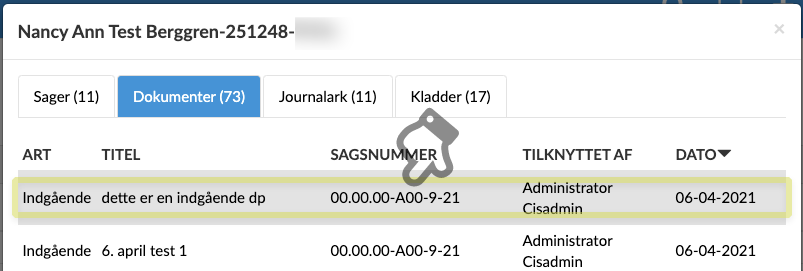 Fanen Dokumenter indeholder alle dokumenter fra sager, hvorpå den valgte er part.