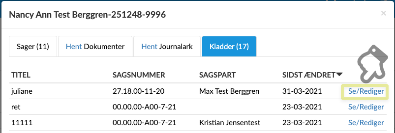 Klikker du på Se/Rediger på en kladde, så åbner du kladden