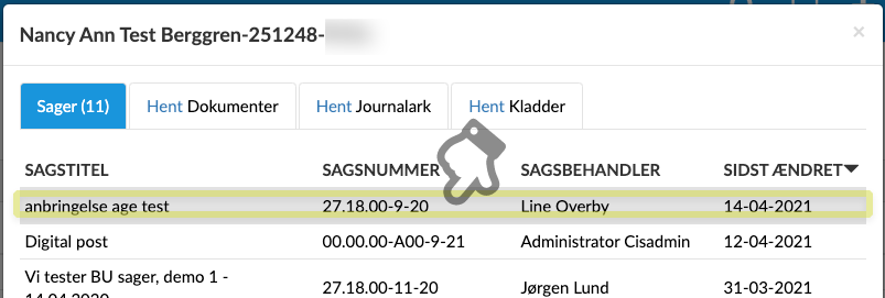 Du kan se en oversigt over partens Sager, dokumenter, journalark og kladder flere steder i klienten