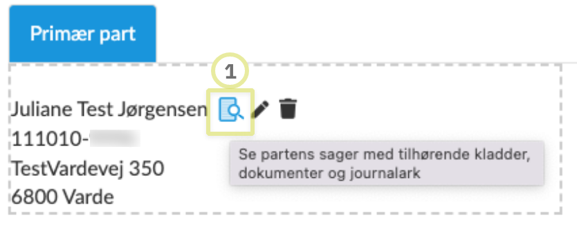 Oversigt over Sager, Dokumenter, Journalark og Kladder relateret til en part