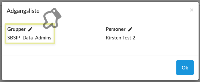 Her kan du tilføje og fjerne adgang for grupper eller enkeltpersoner