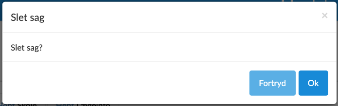 Slet er en standardfunktion der gør det muligt at slette en tom sag