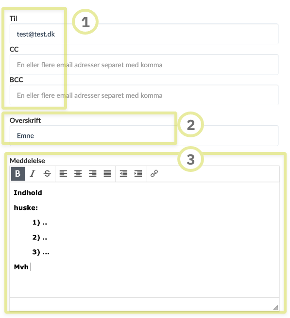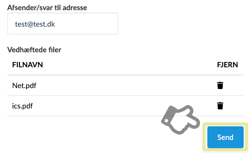 Din mail-signatur er automatisk læst ind i mailen, klik på Send når du er klar