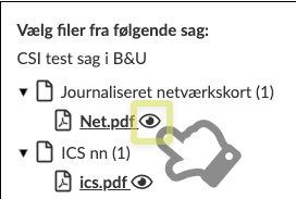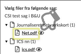 Du kan vedhæfte kladder og dokumenter fra sagen ved at klikke på filerne i dialogboksen til venstre
