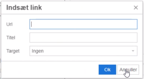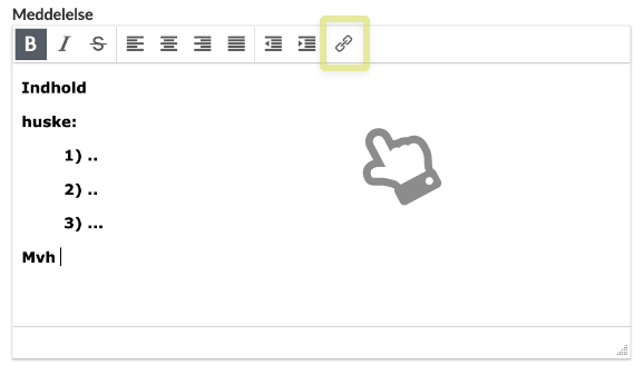 Du har mulighed for at formatere teksten. Desuden kan du indsætte et link i teksten med den viste funktion.