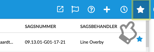 For at se de sager du har givet en favorit markering skal du klikke på ikonet for favoritter i menu-linjen