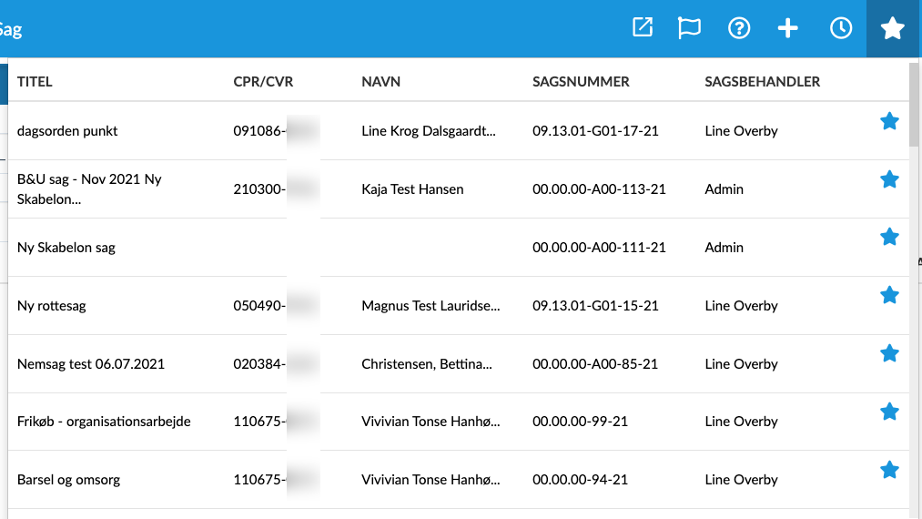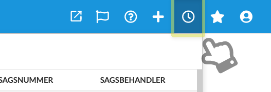 For at se dine seneste sager skal du klikke på ikonet for seneste i menu-linjen