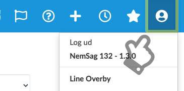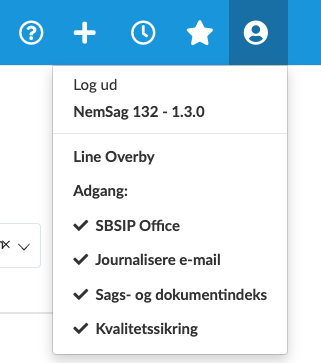Under profil-ikonet gemmer sig oplysninger om brugeren og versionen af NemSag klienten.