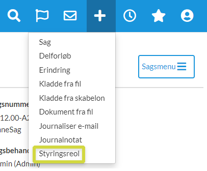Inde på en sag, klik på plus-ikonet øverst, og vælg “Styringsreol”.