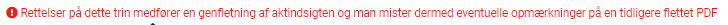 Som vist øverst med rød tekst, medfører rettelser på dette trin, at der flettes en ny aktindsigt, som sletter opmærkninger på en tidligere flettet PDF: