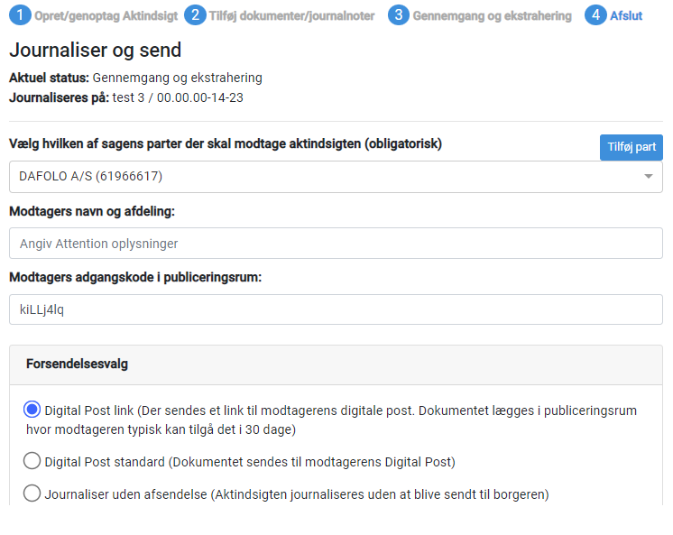 Journaliser uden afsendelse: Hvis man kun ønsker at journalisere uden at distribuere, kan man gøre det uden at angive en part.