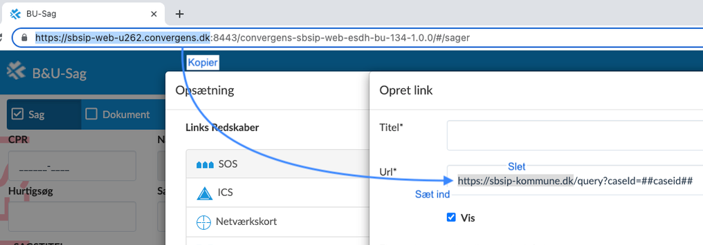 Først kopierer du tekst bidden fra det relevante eksempel. I dette tilfælde er det teksten fra NemSøg, som kopieres og indsættes i feltet Url.