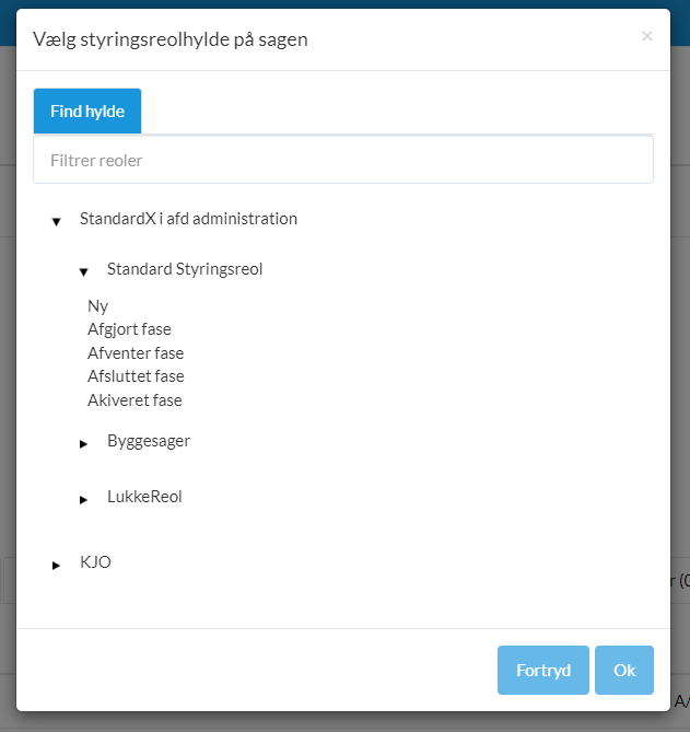 Brug eventuelt filterfeltet til at søge efter en specifik styringsreol.