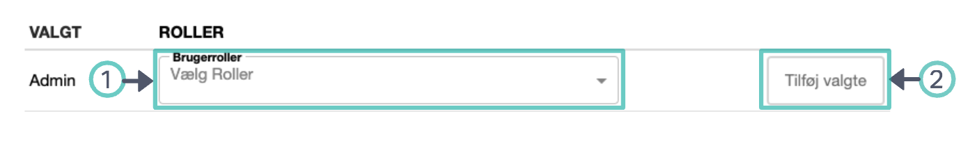 Tilføjede brugere/grupper vises i listen til venstre. Se navn og roller i listen.