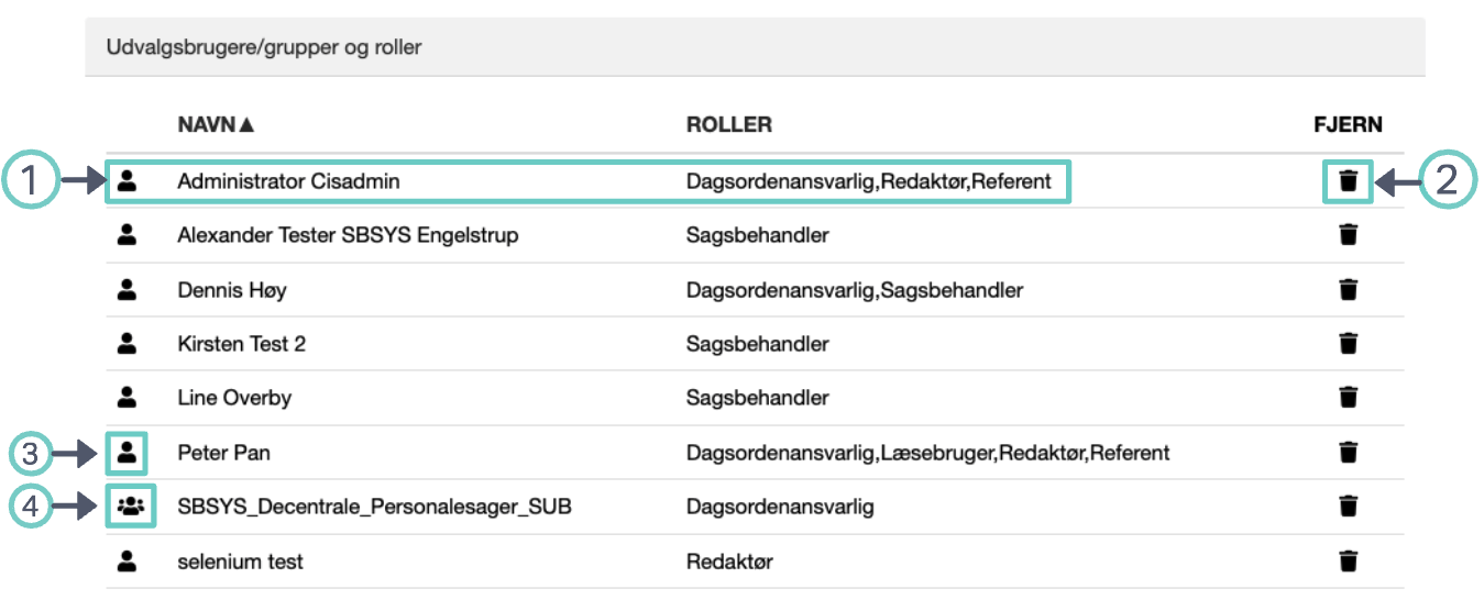 Fjern en bruger ved at klikke på skraldespandsikonet.